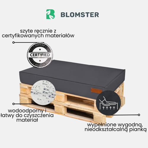 Poducha ogrodowa marki Blomster jest idealnie przystosowana do umieszczenia na europalecie. Poducha sprawdzi się na balkonach, tarasach i w ogrodach. Produkowana i szyta w Polsce z dbałością o najmniejszy szczegół - gwarancja jakości i satysfakcji z zakupu. Dbamy o jakość materiałów i wykonanie. Do szycia naszych pokrowców używamy wyselekcjonowanych, technicznych nici, które cechuje wysoka odporność na światło Uv oraz wodoodporność. Nici, które są użyte przy szyciu poduch Blomster poradzą sobie z najtrudniejszymi czynnikami zewnętrznymi takimi jak wysoka temperatura, wilgoć, promienie słoneczne czy wiatr. Nie przyjmują wody, nie blakną ani nie pękają - dzięki temu przez produkt nie będzie rwał się na szwach i zachowa doskonałą kondycję przez długie lata.
